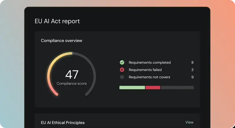 Automate and validate compliance. Continuously verify AI posture against frameworks like EU AI Act or NIST and enforce internal mandates.